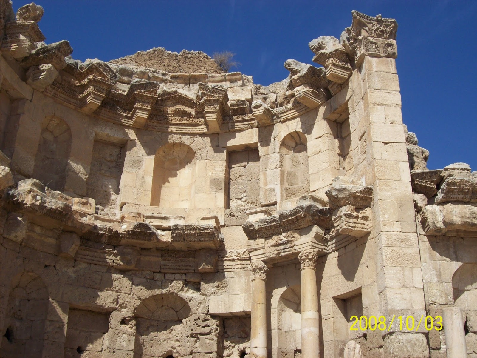 This was my second time in Jordan after my return visit from Turkey & Syria. After a good rest last night , my next few days were focused on visiting 3 major places of interest which come under the "Wonders" category ie Jerash, Dead Sea & Petra. This morning, I took a bus (1/2 JD) from Trababour station to Jerash, about 1 1/4 hr from Amman. Jerash is a well preserved Roman city and I spent 3 hours to see the place. I paid 8JD=Rm61 for the entrance fee. On arrival, there were 8-10 bus loads of tourists so indeed Jersah is a major attraction in Jordan.