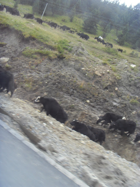 3) A herd of yaks, yaks & yaks becoming king of the roads - traffic came to a standstill, the yaks yaking in line in slow motion to an open pasture land led by a herdsman, what an interesting sight !
